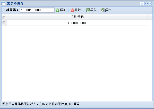 4:输入想设置的黑白名单号码,点击增加。如图: